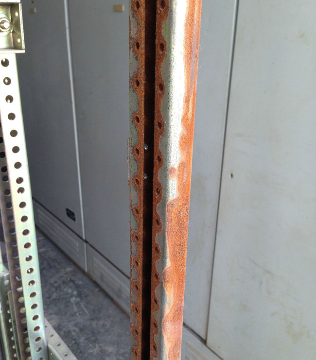我們技術員到了現場一看,有6套某品牌的柜子,很多鍍鋅的柜體都嚴重生銹了。這真的是兩年前做的嗎?祥科的技術員也納悶了。這個配電房通風好,不潮濕,也沒有腐蝕,怎么會銹成這樣。但當采購說他們這幾套柜的價格時,我們都心知肚明。