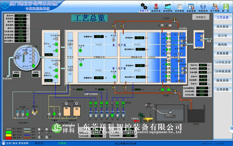 東莞虎門立沙島污水處理廠采用先進的污水處理工藝,其設計規模為2.5萬立方米/日,總建筑面積約1369.1 m2,污水處理量為2500m3/d。其中廠內污水處理自控系統由東莞祥科智控裝備有限公司設計并實施,建成后將極大地改善了周圍水體環境,對治理水污染,保護當地流域水質和生態平衡具有十分重要的作用。