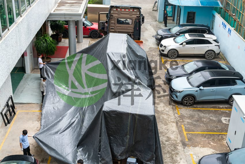 閃電裝卸:雨中暴露時(shí)間 <30秒,設(shè)備全程覆蓋雙層加厚防雨布,邊緣壓緊綁帶密封